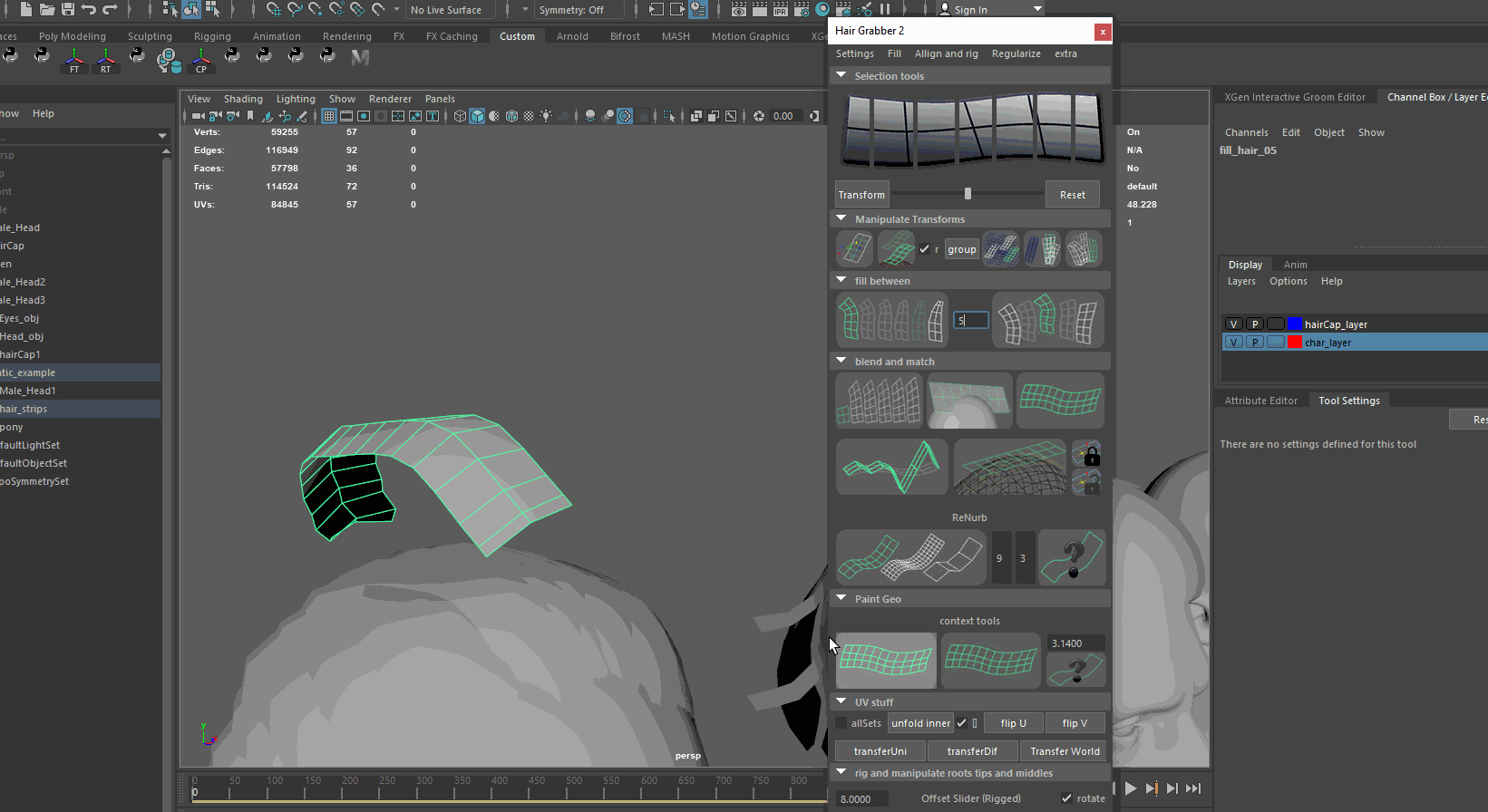 Experimental context based geo painting algorithms to paint hair cards in to existence as well as nudging and smoothing them.